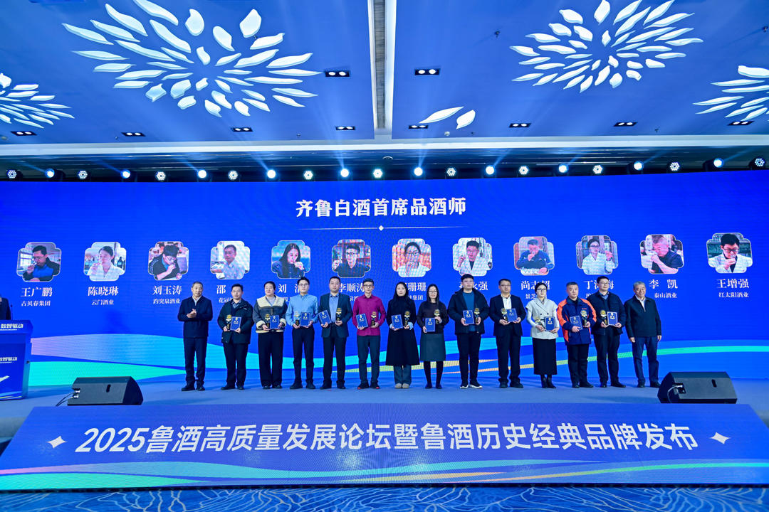 由中国酒业协会、山东数字文化集团指导,齐鲁晚报.齐鲁壹点、山东省白酒协会主办,鲁酒领军企业协办的“2025鲁酒高质量发展论坛暨鲁酒经典传承品牌发布”于2026年1月15日在济南举办,12位“鲁酒国评”获聘“齐鲁白酒首席品酒师”。