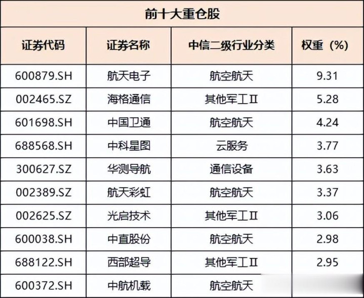 更重要的是覆盖航空航天产业链龙头,能捕捉行业革新带来的潜在机会。